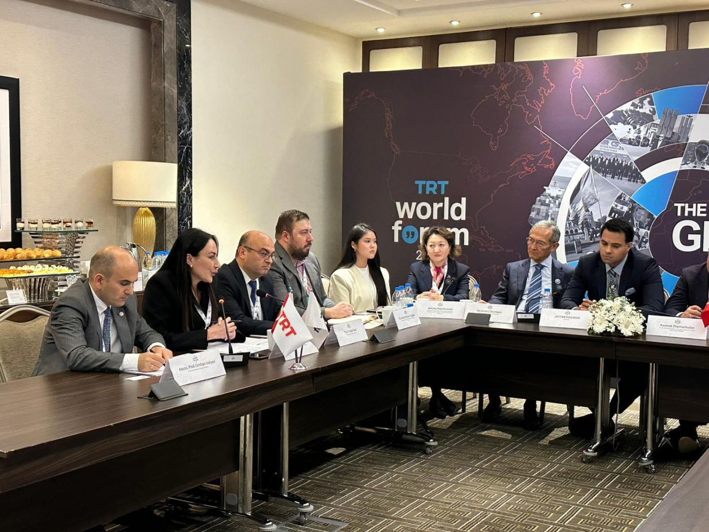 Türk Mədəniyyəti və İrsi Fondunun prezidenti Aktotı Raimkulova İstanbulda keçirilən TRT World Forum 2025 çərçivəsində “Mərkəzi Asiyada Mədəni Diplomatiya və Kollektiv Kimlik: Regional Əlaqə və Birliyə Aparan Yollar” adlı Ekspertlər Dəyirmi Masasında spiker qismində çıxış edib.