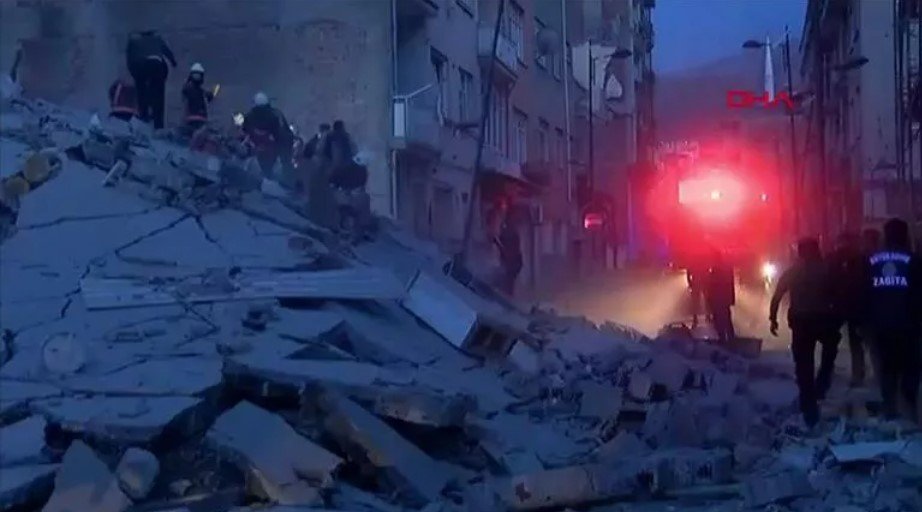 Malatyada ağır ziyan dəymiş dörd mərtəbəli bina uçub.