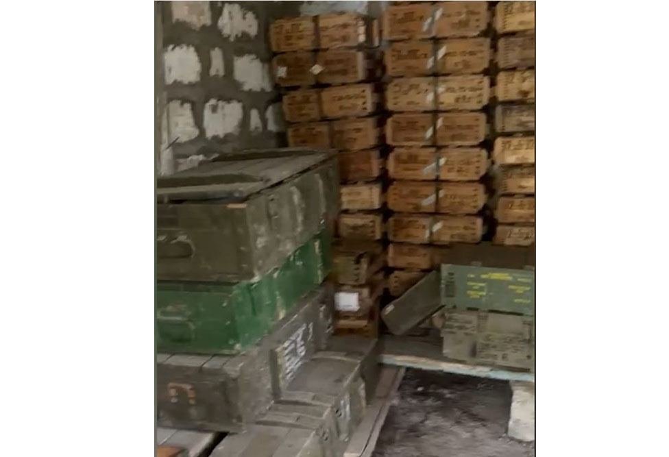 Aşkar edilmiş silah və sursatla dolu yeşiklər, müxtəlif tipli qumbaraatanlar üçün mərmilər, "Kornet" tank əleyhinə raket kompleksinin idarə olunan raketləri, hərbi geyim dəstləri və zirehli dəbilqələr müsadirə edilib.