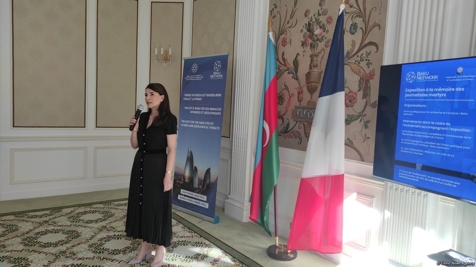Paris şəhərində təşkil olunmuş sərgi çərçivəsində Baku Network ictimaiyyətə şəhid jurnalsitlər haqqında materiallar təqdim edib. Tədbirdə Fransa ictimaiyyətinin nümayəndələri, fransız və xarici jurnalistlər iştirak ediblər.