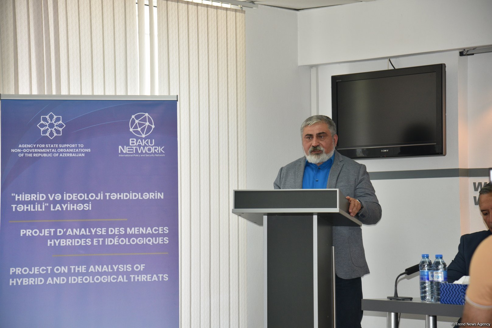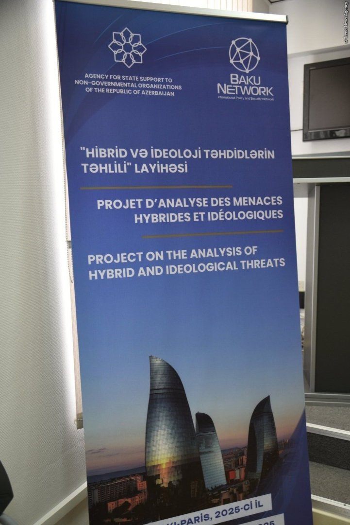 “Baku Network” analitik mərkəzinin Azərbaycan Respublikası Qeyri-Hökumət Təşkilatlarına Dövlət Dəstəyi Agentliyinin dəstəyi ilə icra edilən “Hibrid və ideoloji təhdidlərin təhlili” layihəsi çərçivəsində növbəti tədbir keçirilib.