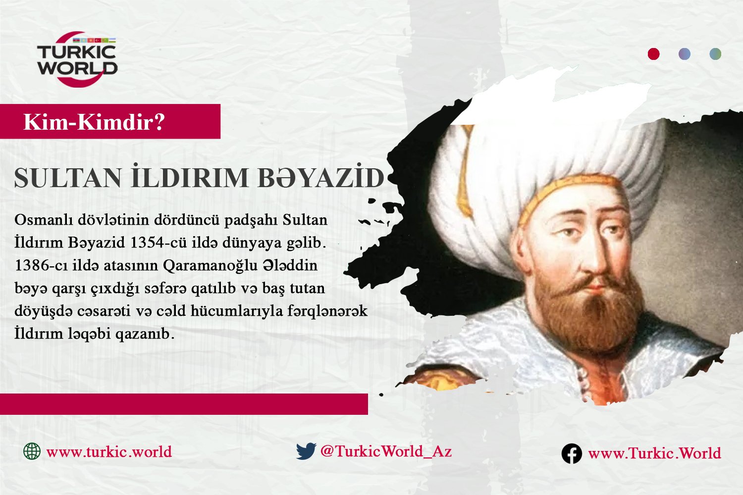 Osmanlı dövlətinin dördüncü padşahı Sultan İldırım Bəyazid 1354-cü ildə dünyaya gəlib. Atası Osmanlı sultanı I Murad, anası Gülçiçək Xatun olub. Bəyazid 1381-ci ildə Gərmiyanoğlu Süleyman Çələbinin qızı Sultan Xatunla evləndirilib və xanımının cehizi olaraq Osmanlılara verilən torpaqlara sancaqbəyi təyin edilib.