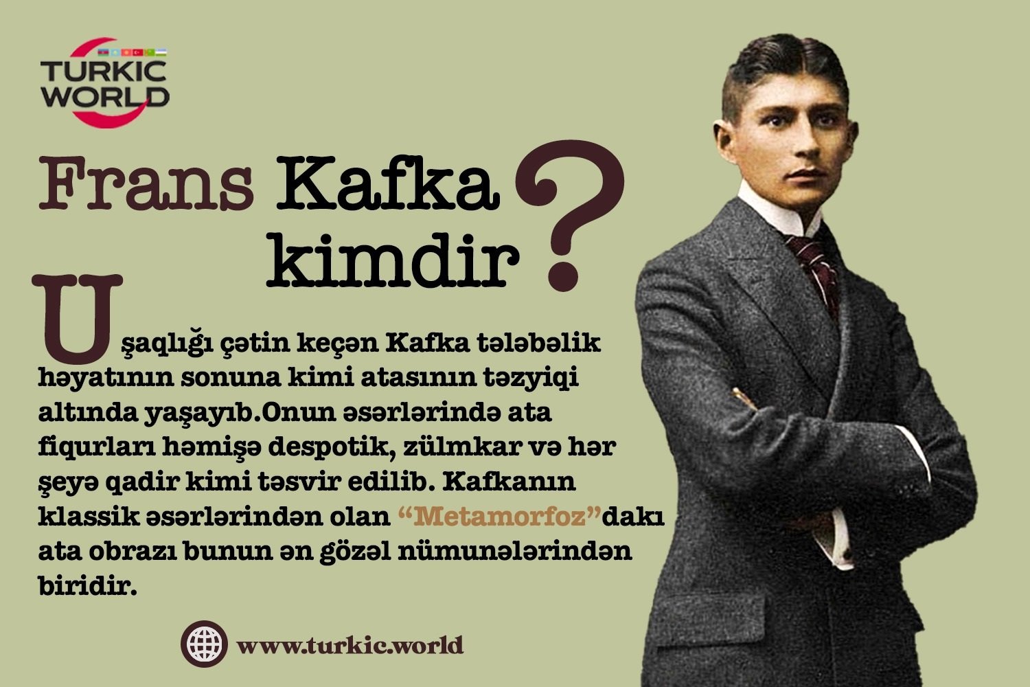 Uşaqlığı çətin keçən Kafka tələbəlik həyatının sonuna kimi atasının təzyiqi altında yaşayıb. Gəncliyində atasından qorxduğunu söyləmək mümkün olmasa da, atasına nifrət etdiyini söyləmək olar. Onun əsərlərində ata fiqurları həmişə despotik, zülmkar və hər şeyə qadir kimi təsvir edilib. Kafkanın klassik əsərlərindən olan “Metamorfoz”dakı ata obrazı bunun ən gözəl nümunələrindən biridir.