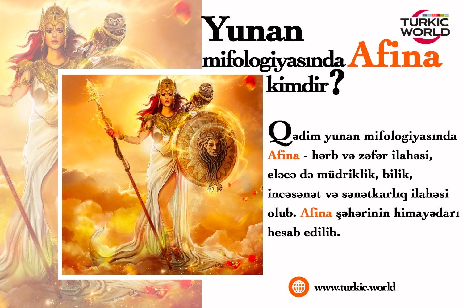 Qədim yunan mifologiyasında Afina - hərb və zəfər ilahəsi, eləcə də müdriklik, bilik, incəsənət və sənətkarlıq ilahəsi olub. Afina şəhərinin himayədarı hesab edilib. Bayquş, dəbilqə, nizə və ilan Afinanın atributları olub.