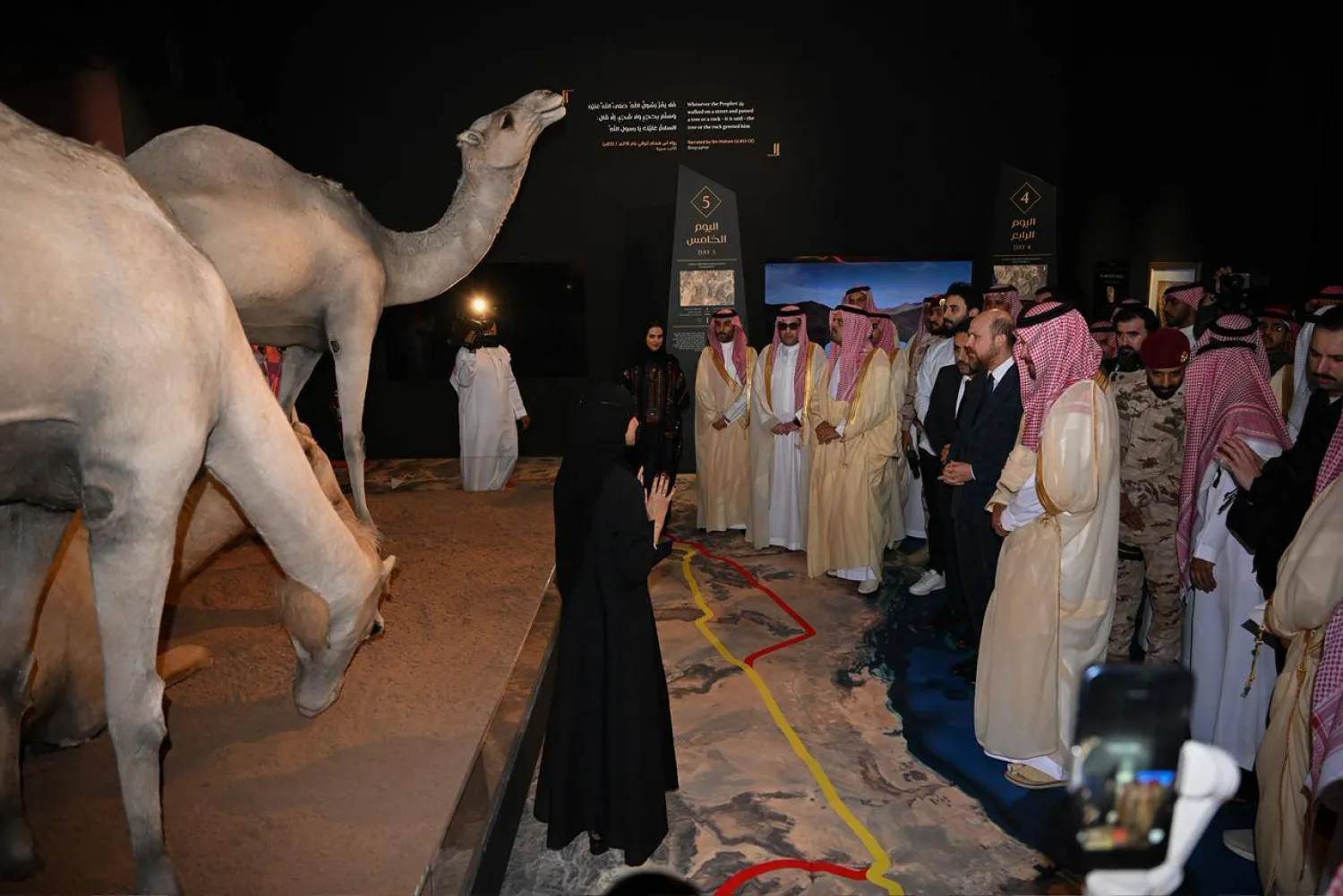 Mərasimdə Məkkə əmirinin müavini şahzadə Səud bin Mişal bin Əbdüləziz və Səudiyyə Ərəbistanı Əyləncə İdarəsinin sədri Türki Al əl-Şeyx də iştirak ediblər. Ekspozisiya 14 interaktiv stansiyadan ibarətdir və burada 8 gün ərzində qət edilən 400 kilometrlik müqəddəs yolun tarixi detalları müasir texnologiyalar və hekayə üslubu ilə nümayiş etdirilir. Sərgi hicrətin Ərəbistan yarımadasının sosial, siyasi və iqtisadi mənzərəsinə göstərdiyi böyük təsiri işıqlandırır.