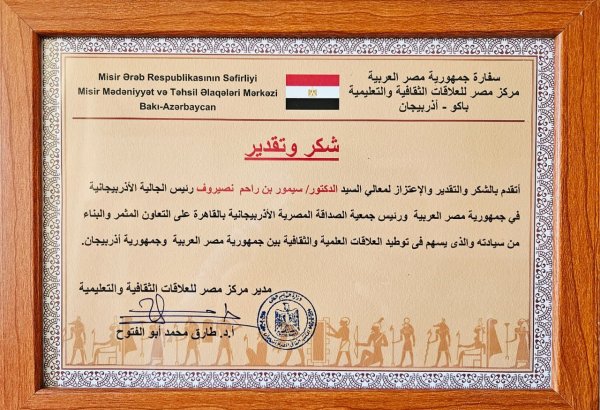 Cəmiyyət Azərbaycanlı alim Misir Təhsil Nazirliyinin medalı ilə təltif olunub 1 Oktyabr 2025 19:20 214