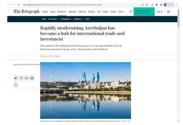 İqtisadiyyat Azərbaycan beynəlxalq ticarət və investisiya mərkəzinə çevrilir - The Daily Telegraph 16 Fevral 2023 20:41 293