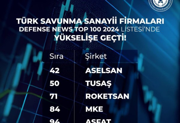 Türkiyə Türkiyə şirkətləri dünyanın 100 ən böyük müdafiə sistemləri siyahısındadır 7 Avqust 2024 11:46 272