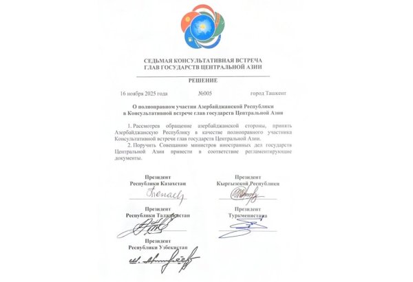 Türk Dövlətləri Mərkəzi Asiya Dövlət Başçılarının “Mərkəzi Asiya+Azərbaycan” formatında 7-ci Məşvərət Görüşünün iclası keçirilib 16 Noyabr 2025 12:53 227