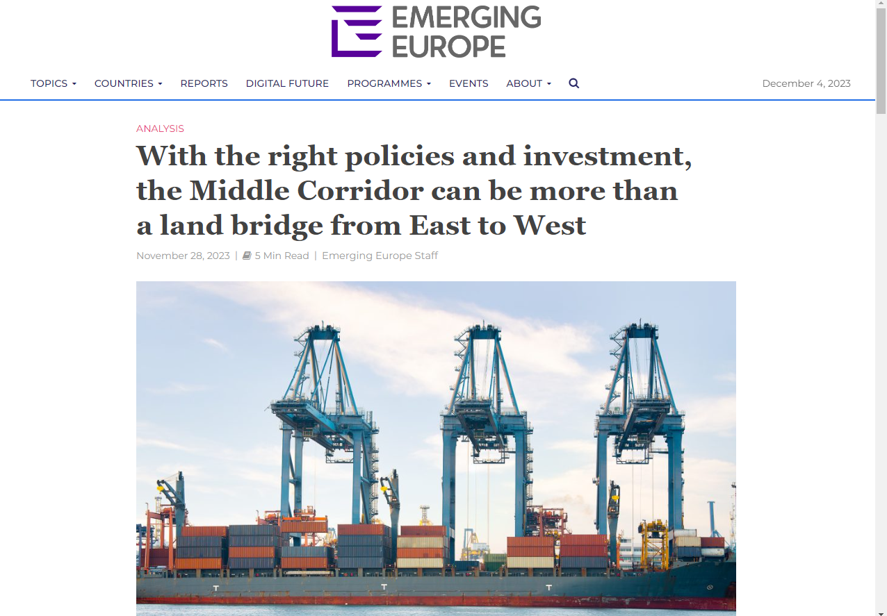 BAKU, Azerbaijan, December 5. Azerbaijan, Georgia, and Kazakhstan, along with other countries, have made significant progress in harmonizing their vision for the development of the Middle Corridor, an article published by Emerging Europe, a London-based think tank said, TurkicWorld reports.
