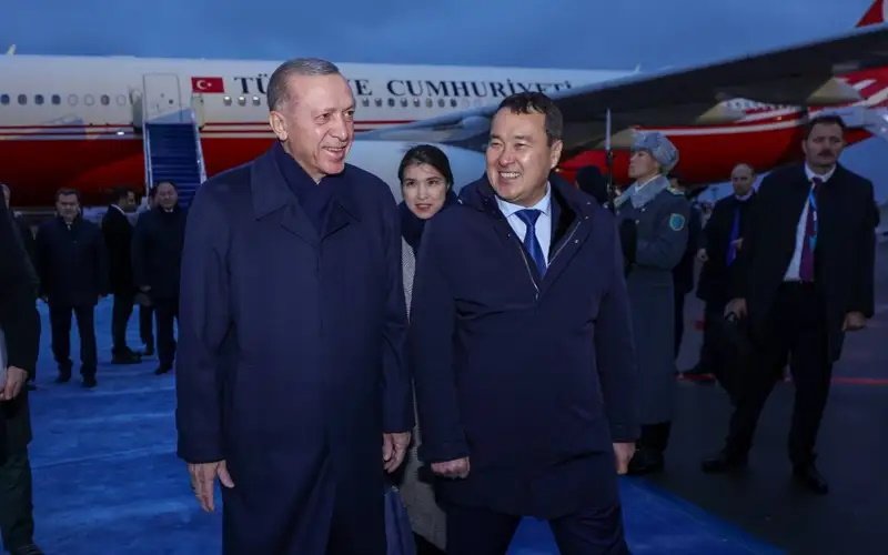 The Turkish leader was welcomed at the airport in Astana by Kazakh Prime Minister Alikhan Smailov.