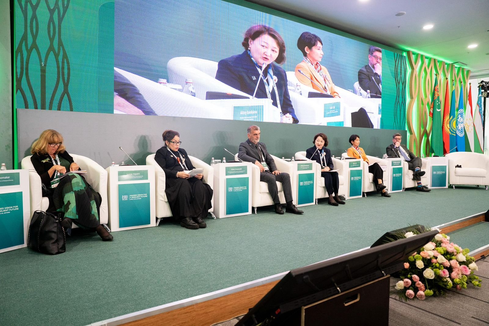 The session featured remarks by Yerlan Nyssanbayev, Minister of Ecology and Natural Resources of the Republic of Kazakhstan; Aziz Abdukhakimov, Chairperson of the National Committee on Ecology and Climate Change; Akyl Toktobaev, Minister of Natural Resources, Ecology and Technical Supervision of the Kyrgyz Republic; Bahodur Sheralizoda, Chairman of the Committee for Environmental Protection under the Government of the Republic of Tajikistan; Ovezgeldi Goshjanov, Minister of Environmental Protection of Turkmenistan.