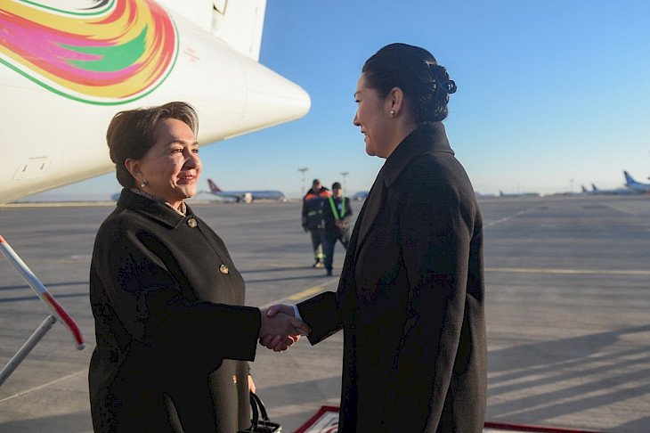 At the Manas International Airport, the distinguished guests were met by Deputy Speaker of the Jogorku Kenesh, Jamilya Isaeva.
