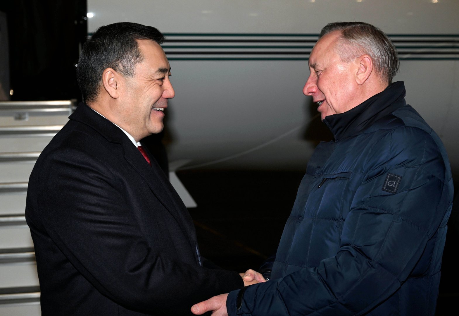 Sadyr Japarov's plane reportedly landed at Pulkovo International Airport in St. Petersburg. He was met at the airport by St. Petersburg Governor Alexander Beglov and government officials.