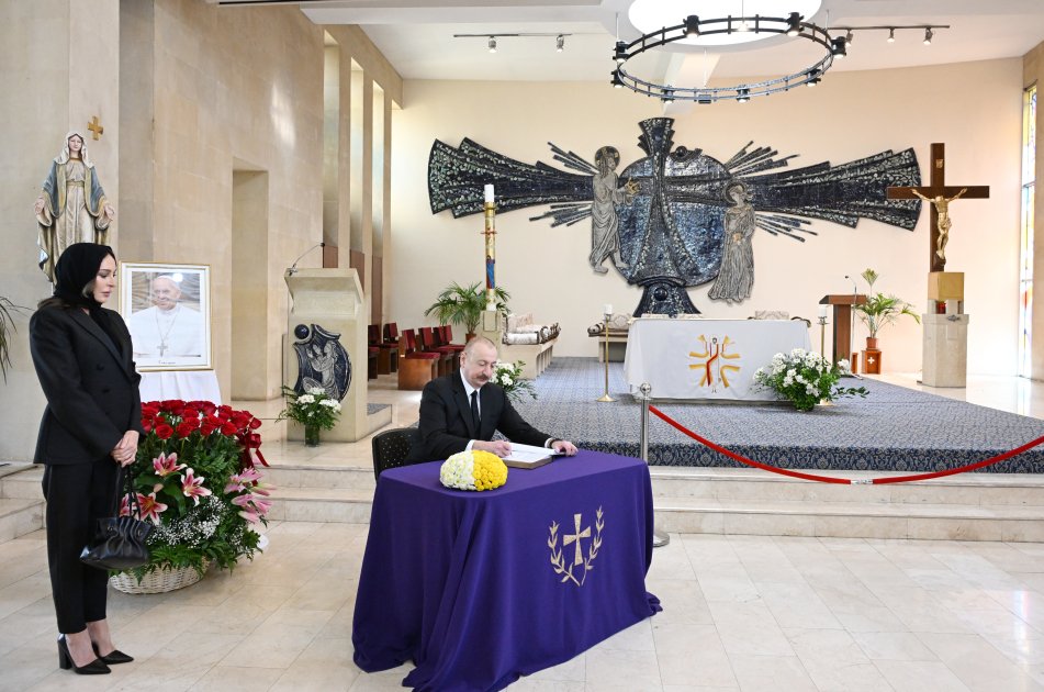 BAKU, Azerbaijan, April 25. On April 25, President of the Republic of Azerbaijan Ilham Aliyev and First Lady Mehriban Aliyeva visited the Church of the Immaculate Conception of the Blessed Virgin Mary in Baku to offer their condolences following the death of Pope Francis, TurkicWorld reports.