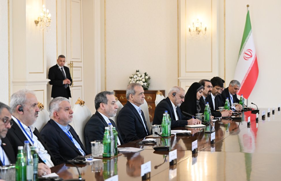BAKU, Azerbaijan, April 28. On April 28, Ilham Aliyev, President of the Republic of Azerbaijan, held an expanded meeting with Masoud Pezeshkian, President of the Islamic Republic of Iran, TurkicWorld reports.