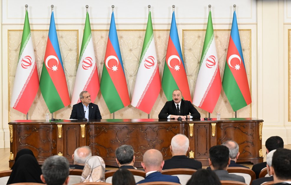 BAKU, Azerbaijan, April 28. On April 28, Ilham Aliyev, President of the Republic of Azerbaijan, and Masoud Pezeshkian, President of the Islamic Republic of Iran, delivered press statements, TurkicWorld reports.