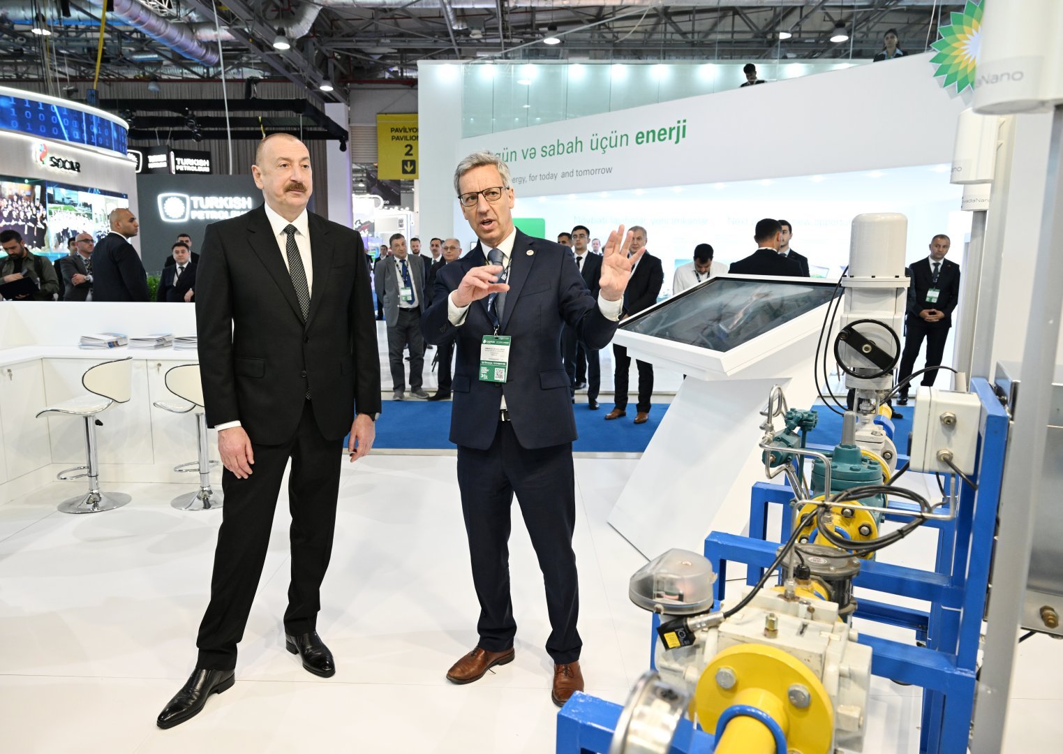 Afterwards, the head of state viewed the Germany’s national pavilion and stands of the following companies: bp Azerbaijan, Türkiye Petrolleri Anonim Ortaklığı” (TPAO), Italy’s Maıre, Budapest-based MOL Group, Russian Federation’s Tatneft, China’s Sinopec SJ Petroleum Machınery Co, Uzbekistan’s Uzbekneftegaz JSC, UAE’s Masdar, USA’s Schlumberger (SLB), Saudi Arabia’s ACWA Power, France’s TotalEnergies.