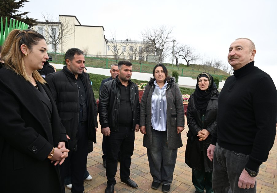 Later, President Ilham Aliyev and First Lady Mehriban Aliyeva met with the returning residents of Khanoba village.