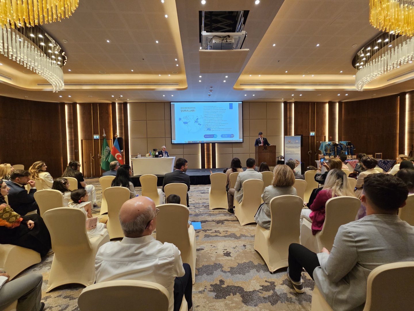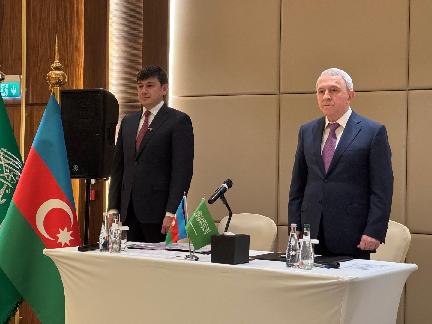 The meeting began with the performance of the national anthems of Azerbaijan and Saudi Arabia.