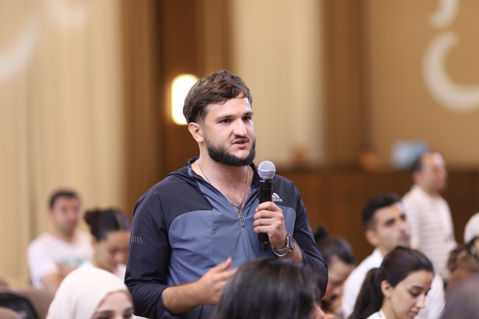 The athletes, who proudly display the Azerbaijani flag on international stages, shared their personal experiences and answered numerous questions from young people. The participants received interesting advice about Azerbaijan's sporting achievements, their successes, and how the younger generation can continue in the same vein. They gave examples from their careers, emphasizing the importance of discipline and systematic progress toward goals for the development of talent and abilities. The athletes' answers aroused great interest among the young people, and the knowledge they gained was met with enthusiasm. The discussion continued with interesting debates, and our fellow citizens highly appreciated this meeting.