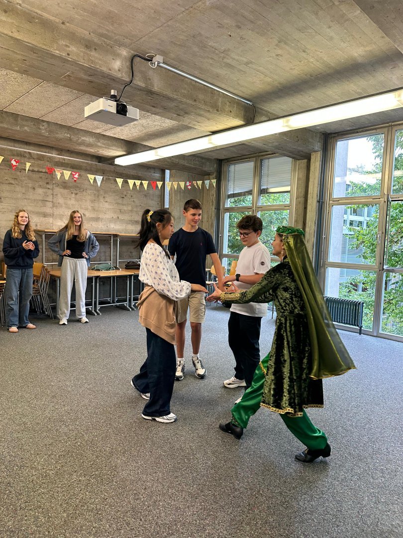 One of the most memorable moments of the event was a performance of Azerbaijani national dances, led by Maria Khan-Khoiskaya, a dance instructor and Azerbaijani compatriot living in Geneva. The students enthusiastically learned the dances and performed them on stage.