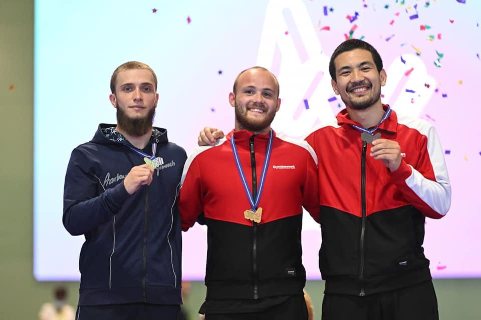 Mikhail Malkin performed in the acrobatic track among adult gymnasts, and won silver in the final competition.