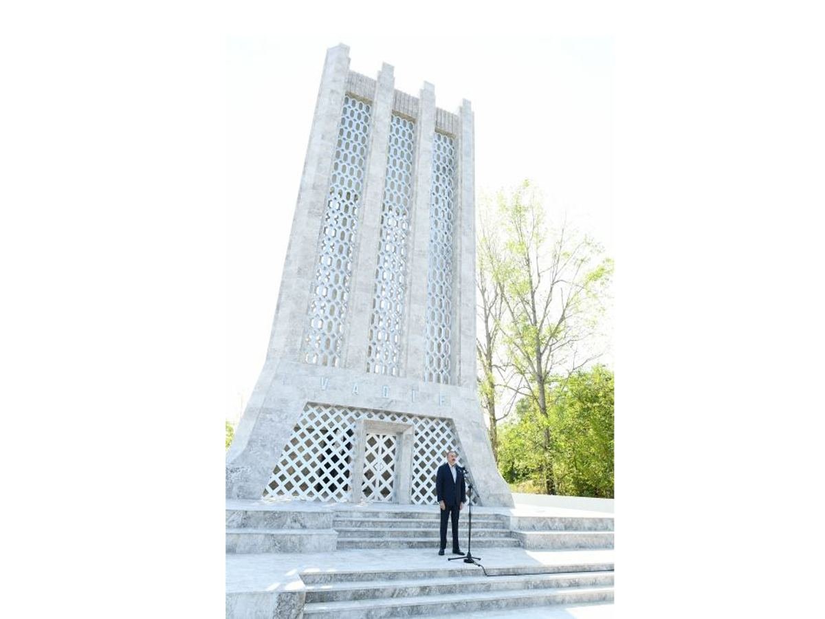 "The busts of our geniuses Natavan, Uzeyir Hajibeyli and Bulbul, which were shot at by the Armenians, have been brought and placed in the central square by me personally," President Aliyev said. "Yesterday saw the start of another stage in the revitalization of Shusha. As I mentioned, Vagif's mausoleum and Vagif's bust were reopened, the statue of Uzeyir Hajibeyli, which was destroyed by the contemptible enemy, was erected again."