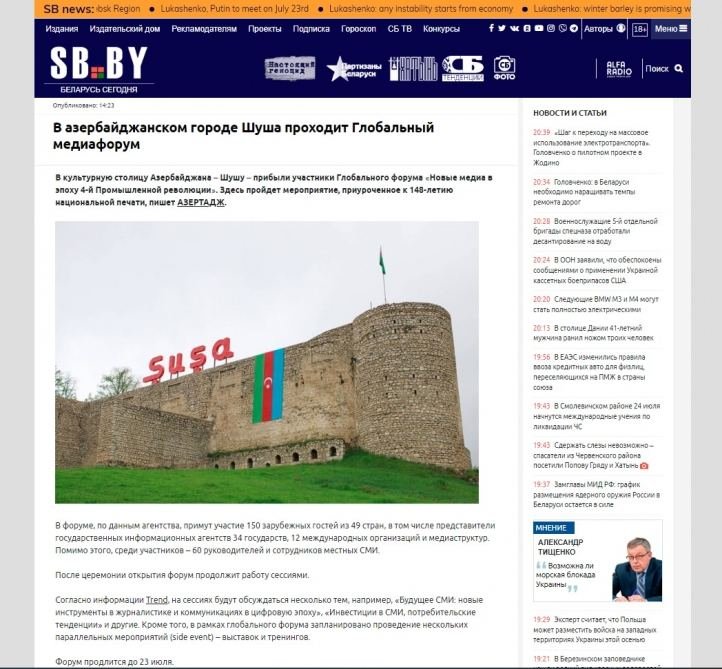 The Belarus Segodnya Publishing House has published information that also says that at the forum organized in connection with the 148th anniversary of the national press of Azerbaijan, the cultural capital of Azerbaijan, the city of Shusha, hosts representatives of the world media. The publication reports that 150 foreign guests from 49 countries, including representatives of state news agencies from 34 countries and 12 international organizations and media structures, are taking part in this prestigious international event. In addition, 60 leaders and representatives of local mass media are among the participants in the forum.