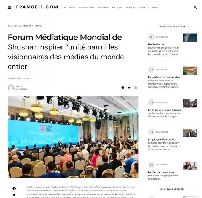 The Shusha Global Media Forum is also in the spotlight in the Russian media. In the news published by Russia’s TASS news agency as well as posted on websites News.ru and Ria.ru, President Ilham Aliyev's opinion on Russian-Azerbaijani relations, on strengthening ties with Türkiye, that Azerbaijan's chairmanship has breathed new life into the Non-Aligned Movement, and that Azerbaijan can become a platform for negotiations to restore relations between Moscow and Washington, is being discussed.