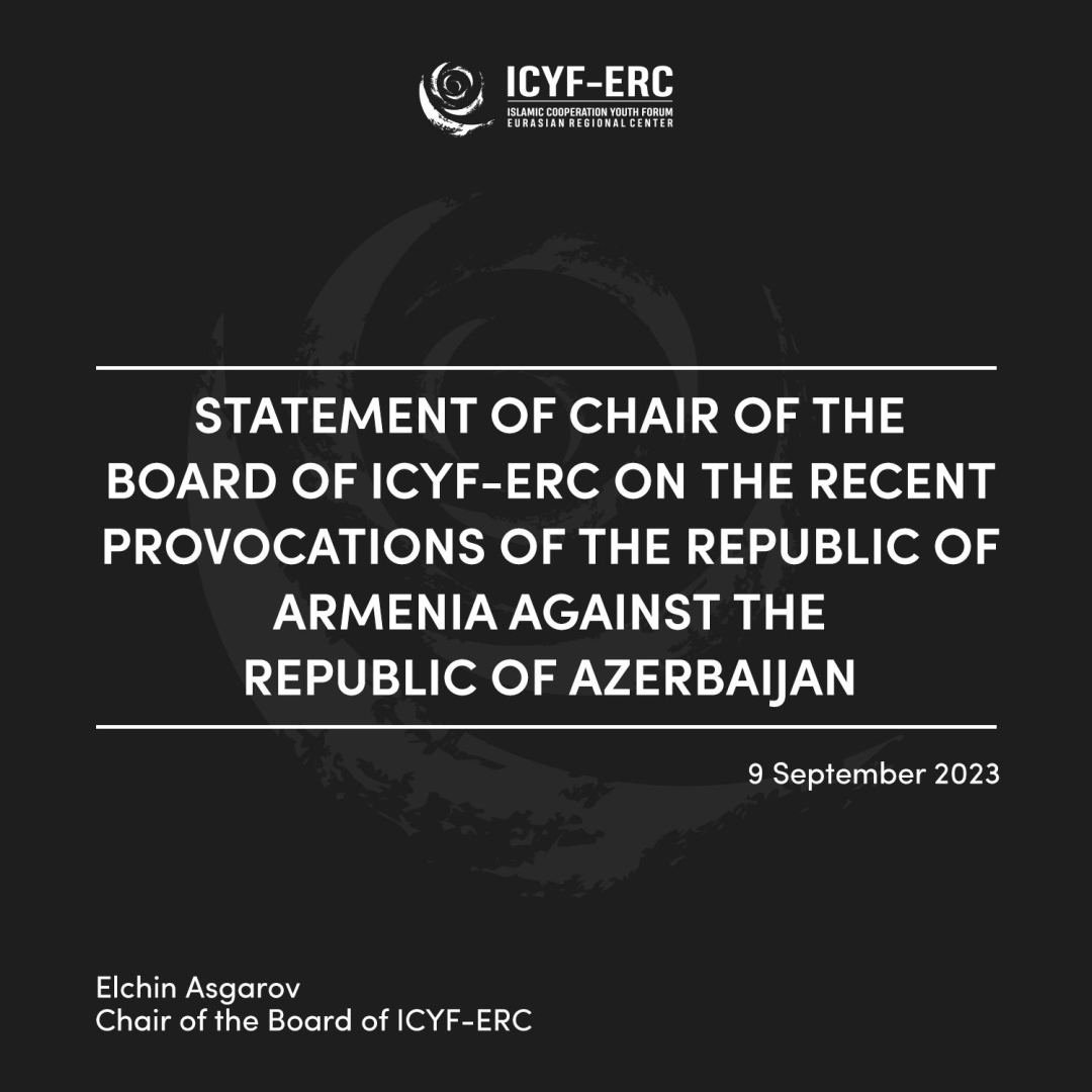ICYF-ERC urges Armenia to immediately cease its illegal activities directed against the sovereignty and territorial integrity of Azerbaijan and to constructively engage in diplomatic negotiations with the Republic of Azerbaijan to support the normalization process in the region. ICYF-ERC supports peace negotiations between Armenia and Azerbaijan and believes that signing a peace agreement will make a major contribution to peace and stability in the region.