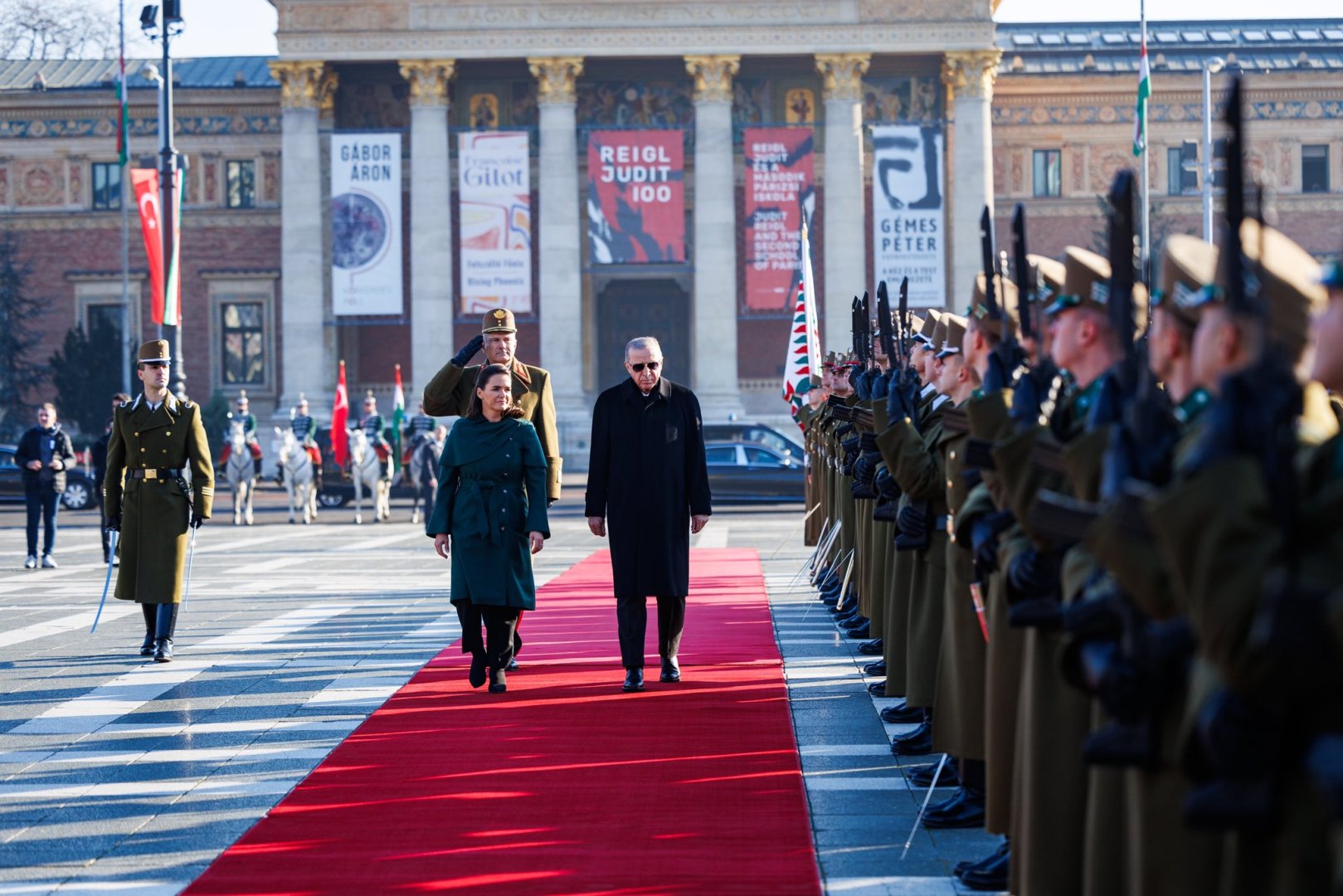 Erdoğan was received with military honors in Budapest's historic Heroes' Square before heading into a meeting with Hungarian President Katalin Novak. He then held bilateral talks with the Hungarian prime minister.