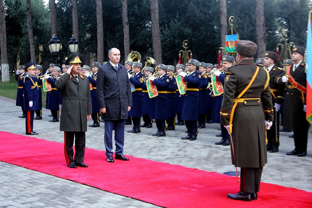 Before the meeting, an official welcoming ceremony was held in the Ministry of Defense. The Georgian minister of defense passed along the guard of honor and national anthems of both countries were performed.