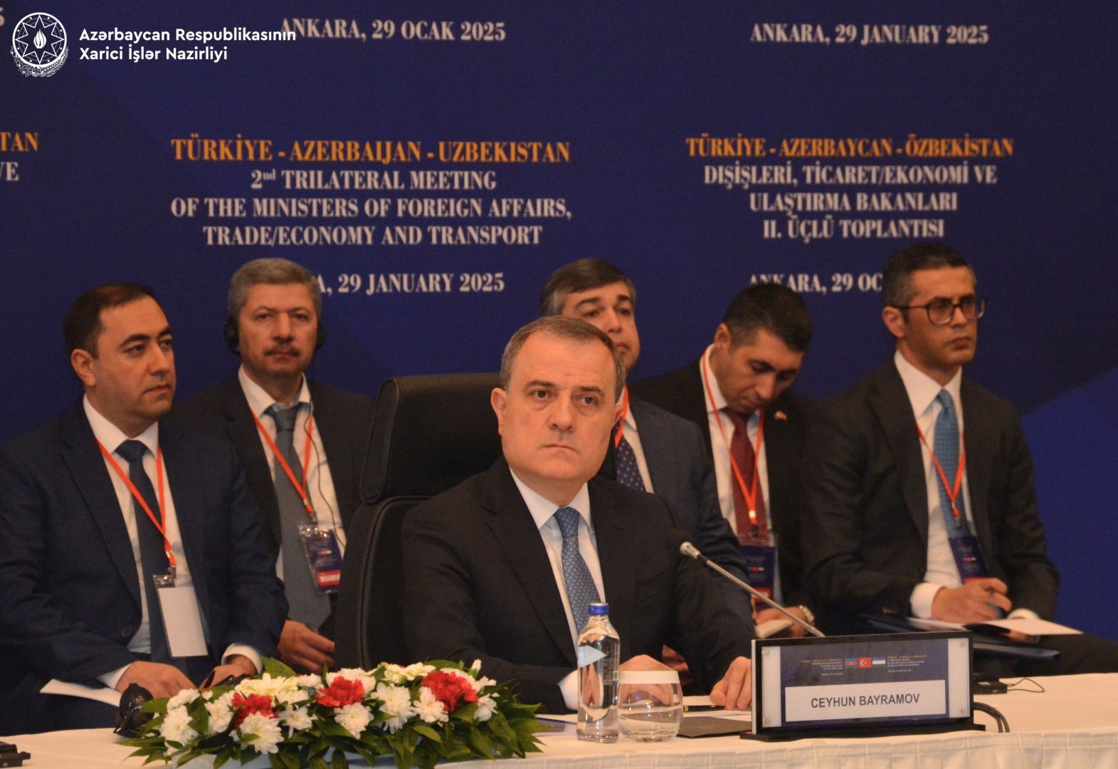BAKU, Azerbaijan, January 29. Minister of Foreign Affairs of the Republic of Azerbaijan Jeyhun Bayramov addressed the second trilateral meeting of MFAs, Trade/Economy, and Transport Ministers of Azerbaijan, Türkiye, and Uzbekistan in Ankara, the publication of Azerbaijani MFA on X said, TurkicWorld reports.