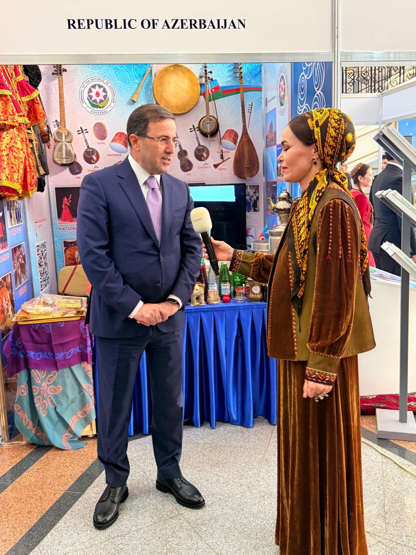 The Deputy Chairman of the Cabinet of Ministers and Minister of Foreign Affairs of Turkmenistan, Rashid Meredov, along with government officials and diplomatic representatives, visited the Azerbaijani stand. The exhibition guests showed great interest in the booth of Azerbaijan.