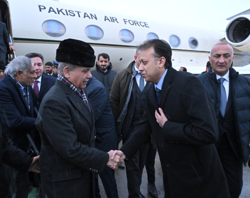 Pakistani Prime Minister Muhammad Shahbaz Sharif was met at the airport by First Deputy Prime Minister of the Republic of Azerbaijan Yagub Eyyubov, Deputy Foreign Minister Yalchin Rafiyev and other officials.