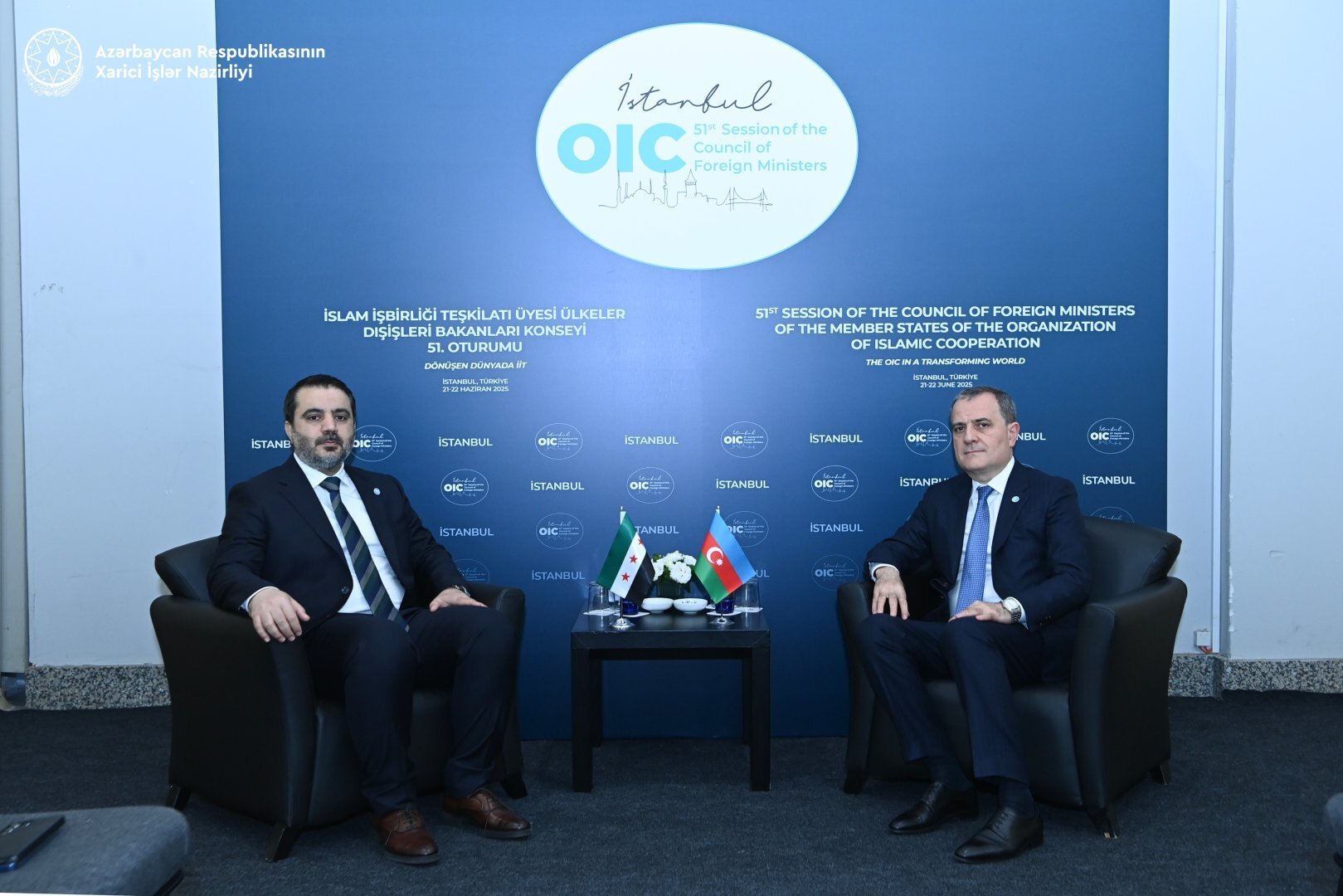 BAKU, Azerbaijan, June 21. Azerbaijan's Foreign Minister Jeyhun Bayramov met with his Syrian counterpart, Asaad al-Shaibani on the sidelines of the 51st session of the Council of Foreign Ministers of the Organization of Islamic Cooperation (OIC) in Istanbul, Türkiye, today, the Azerbaijani Foreign Ministry said, TurkicWorld reports.
