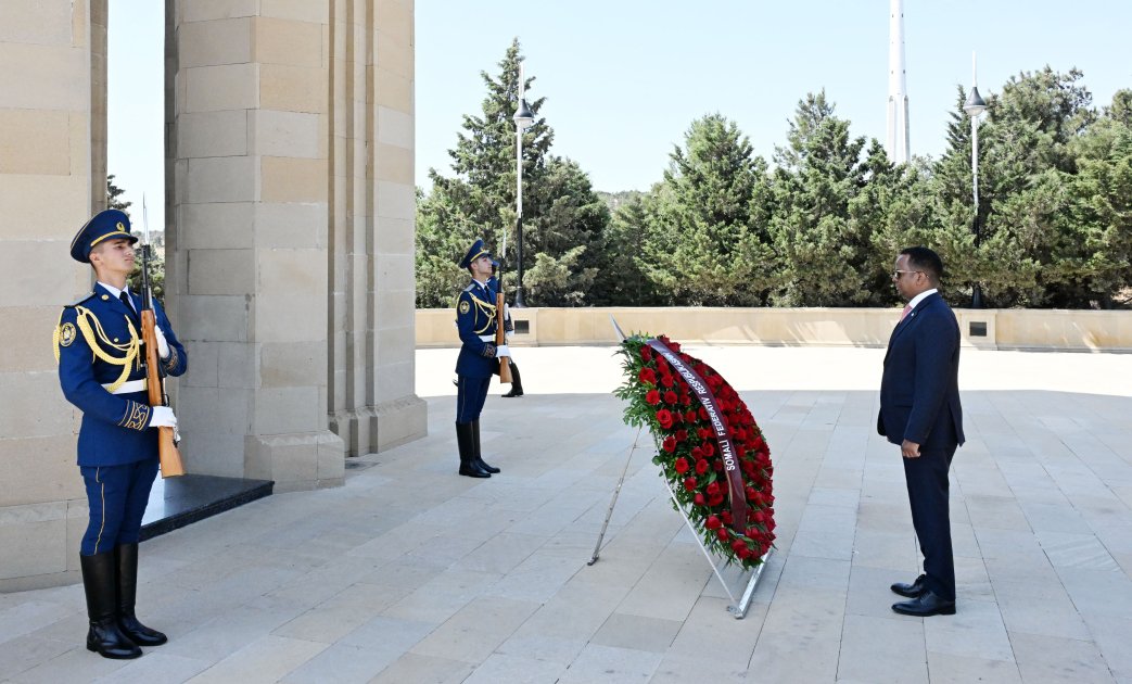 Azerbaijan Somalia Heydar Aliyev Somalia's FM visits National Leader Heydar Aliyev's grave and Alley of Martyrs 24 July 14:15 75 Facebook Twitter Pinterest Reddit WhatsApp BAKU, Azerbaijan, July 24. Somalian Minister of Foreign Affairs and International Cooperation, Abdisalam Abdi Ali, has visited the grave of the National Leader Heydar Aliyev and the Alley of Martyrs, TurkicWorld reports. Will be updated Official Chronicle All Azerbaijan approves “Reliable Partner Concept” as state support mechanism - decree 5 December 17:21 16 Chancellor of Germany makes phone call to President Ilham Aliyev Azerbaijan changes composition of AzerGold CJSC's Supervisory Board President Ilham Aliyev receives Minister of State for Defense of United Kingdom Other news All KSrelief implemented 78 projects for disabled people 5 December 21:50 17 Festival film shows Gaza circus yearning for ‘one more show’ Related articles Politics Azerbaijani FM addresses 4th European Conference on Azerbaijan Studies in Austria Other news KSrelief implemented 78 projects for disabled people Economy SOFAZ explores investment opportunities with international institutions Transport Azerbaijan Railways possesses strong potential for decarbonization – official Other news Georgia, Azerbaijan likely to take media co-op to new level - official Economy Azerbaijan sheds light on steps towards WTO membership Other news Court hearing on Ruben Vardanyan’s criminal case continues with evidence presentation Other news Court confirms date for next hearing on Ruben Vardanyan's criminal case