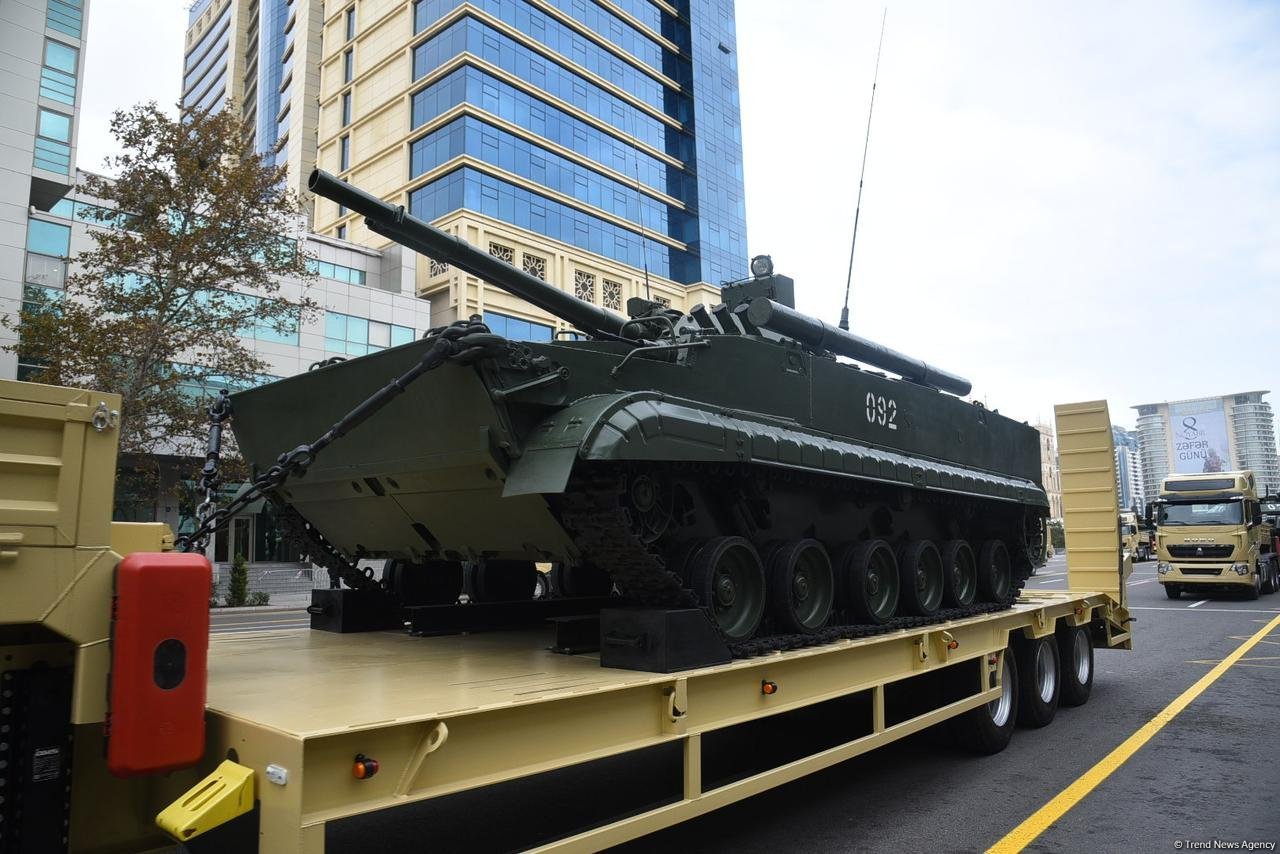 As part of the parade preparations, the Armed Forces of the Republic of Azerbaijan are conducting exercises and showcasing military equipment.