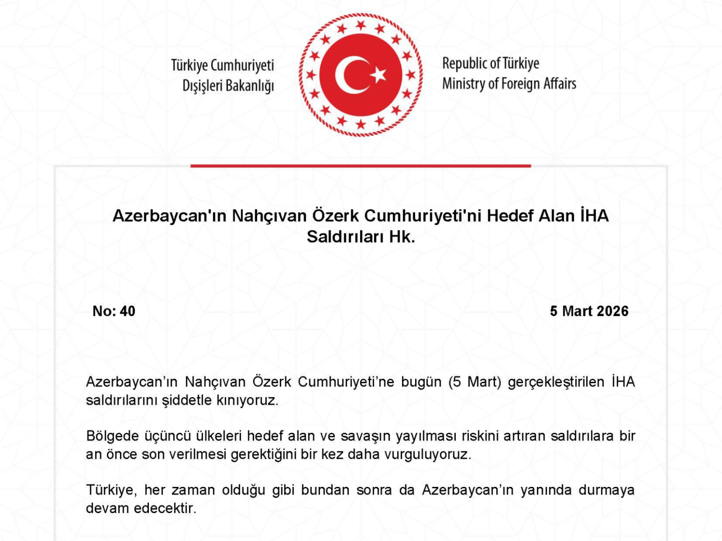 BAKU, Azerbaijan, March 5. The Turkish Foreign Ministry strongly condemns Iran's UAV attacks on Azerbaijan, the statement of the ministry says, TurkicWorld reports.