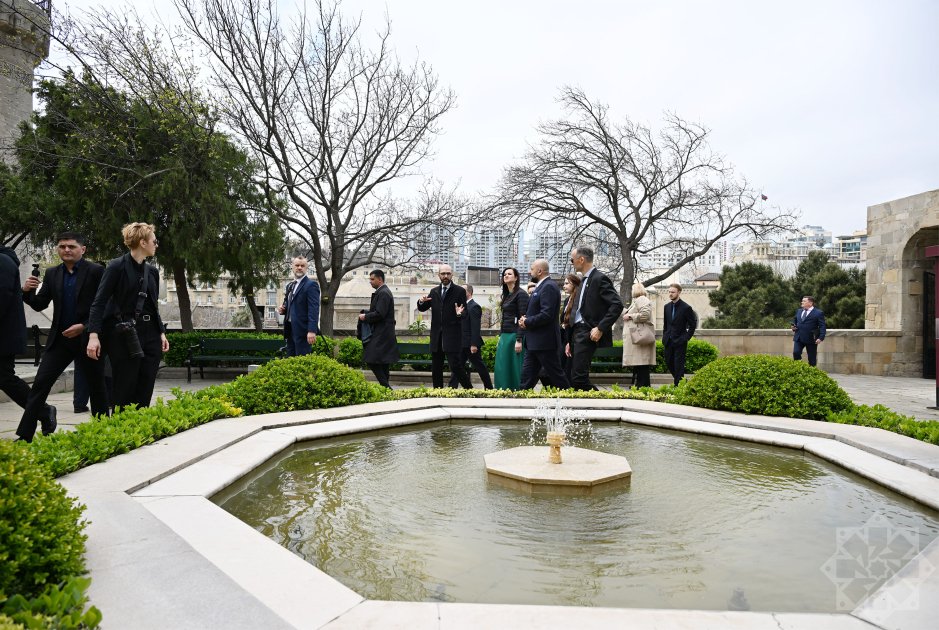 The guest also visited the Maiden Tower, where she was informed that the monument was founded in the 7th-6th centuries BC and restored in the 12th century. The structure stands at a height of 28 meters with a diameter of 16-16.5 meters.