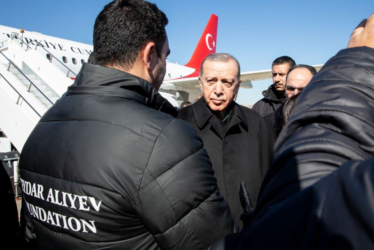 BAKU, Azerbaijan, February 9. Today, Turkish President Recep Tayyip Erdogan, who is in the earthquake-affected area, met at Gaziantep Airport with employees of the Heydar Aliyev Foundation, who, in accordance with the instructions of First Lady of Azerbaijan, President of the Heydar Aliyev Foundation, Mehriban Aliyeva, delivered humanitarian aid to the fraternal country, TurkicWorld reports.
