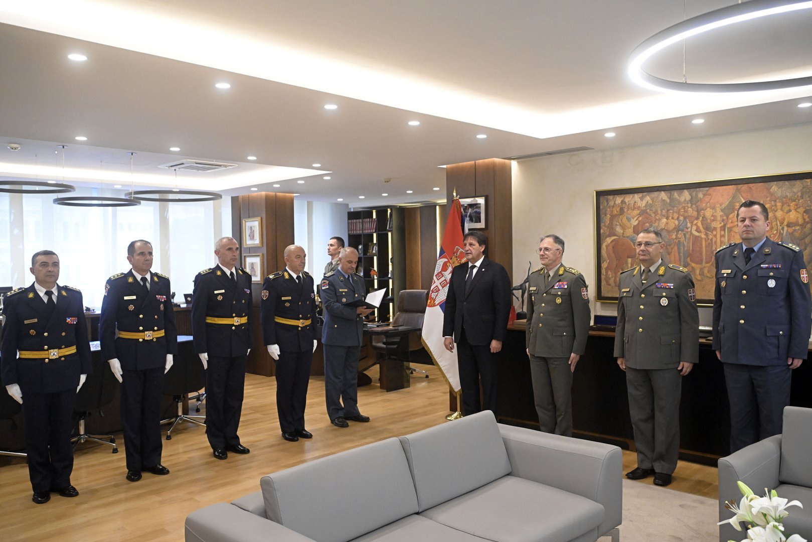 "I believe that with your dedication, knowledge, and responsibility, you will continue to contribute to the further improvement of the situation in the Land Forces and the strengthening of the operational capabilities of the Serbian Armed Forces. I congratulate you on your new appointments and wish you to continue to be an example to younger colleagues," said the Minister of Defense, stressing that dedicated and expert people are the backbone of our army.