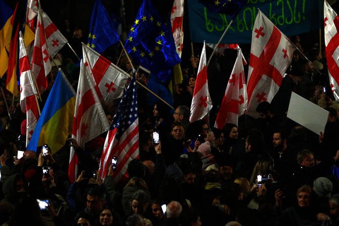 BAKU, Azerbaijan, November 28. Thousands of pro-EU Georgians took to the streets of Tbilisi on Friday on the anniversary of a government decision to shelve the country’s accession to the bloc that triggered mass protests, TurkicWorld reports via Arab News.