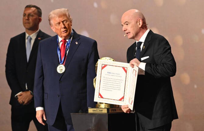 “This is your prize, this is your peace prize,” Infantino said. He has repeatedly spoken about soccer as a unifier for the world, but the prize is a departure from the federation’s traditional focus on sport.