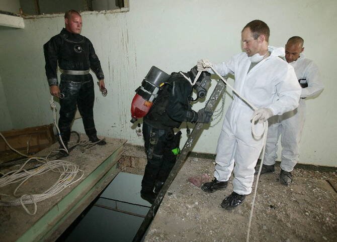 Several months after deployment to the site, however, the servicemen were joined by two workers wearing protective gear who placed signs around it reading: “Warning. Chemical hazard. Full protective equipment and chemical respirator required. Sodium dichromate exposure.”