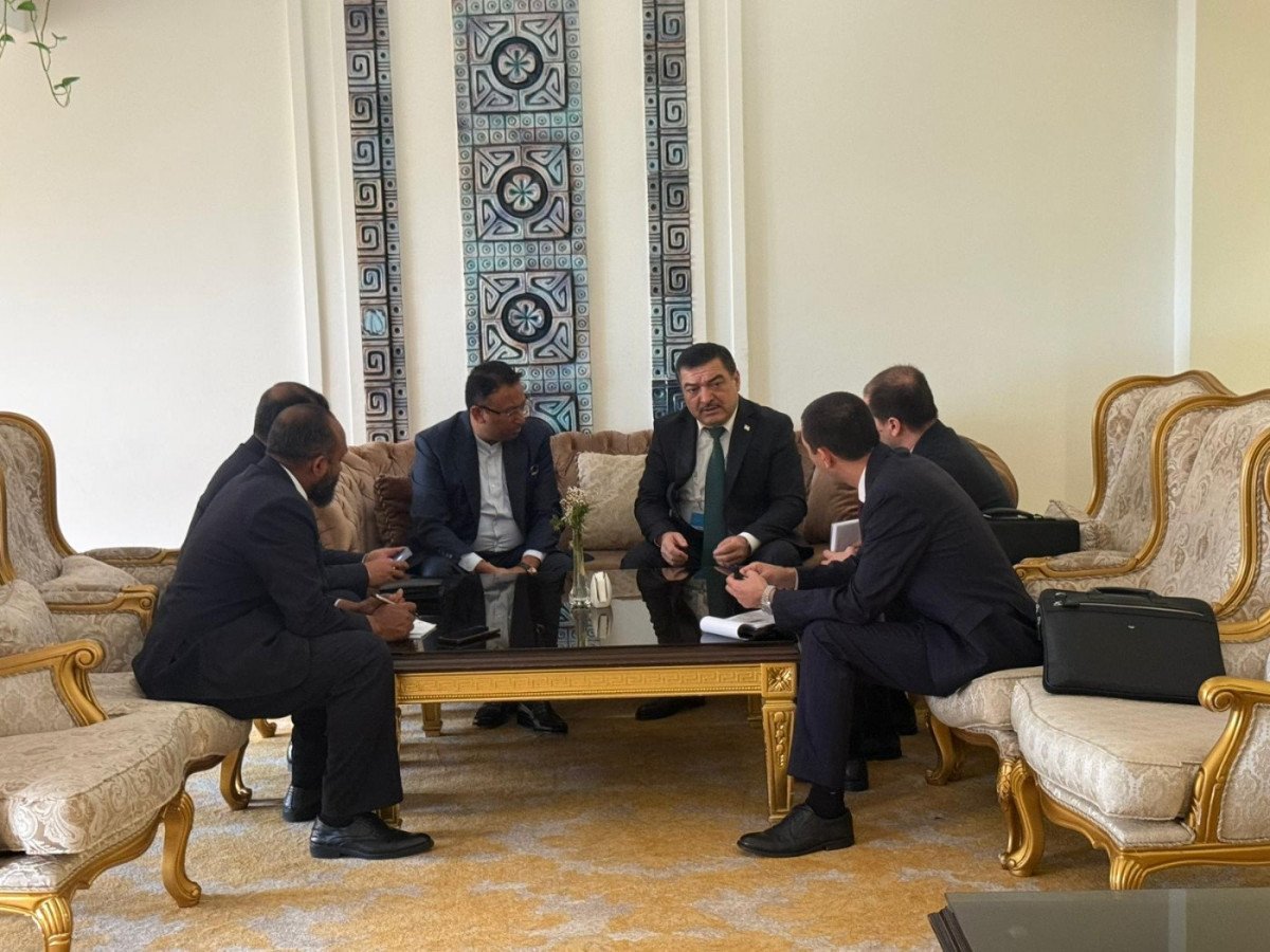The dialogue took place during a meeting between Farrukh Sharifzoda, Deputy Minister of Foreign Affairs of the Republic of Tajikistan, and Humayun Kabir, Foreign Policy Adviser to the Prime Minister of Bangladesh and State Minister, on April 18, 2026.