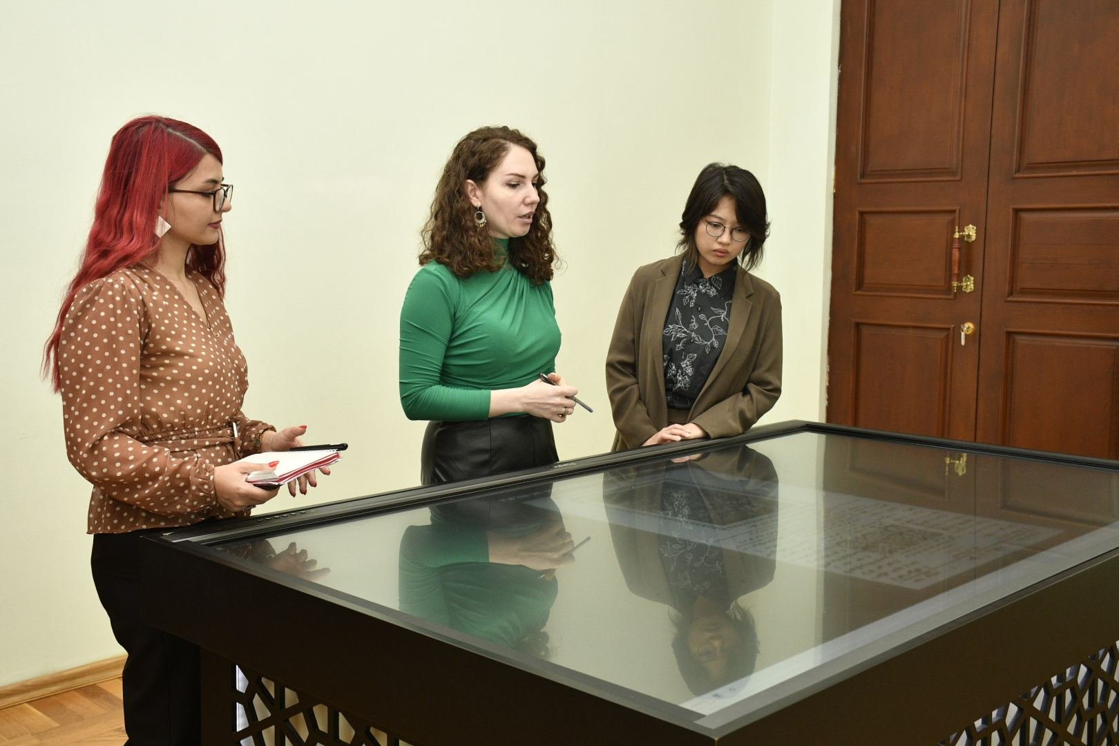 На встрече присутствовали заместитель директора по охране и учету музейных экспонатов, главный хранитель, доктор философии по истории, доцент Махфуза Зейналова и заведующая отделом международных связей и работы с общественностью Зумруд Исмаилова.