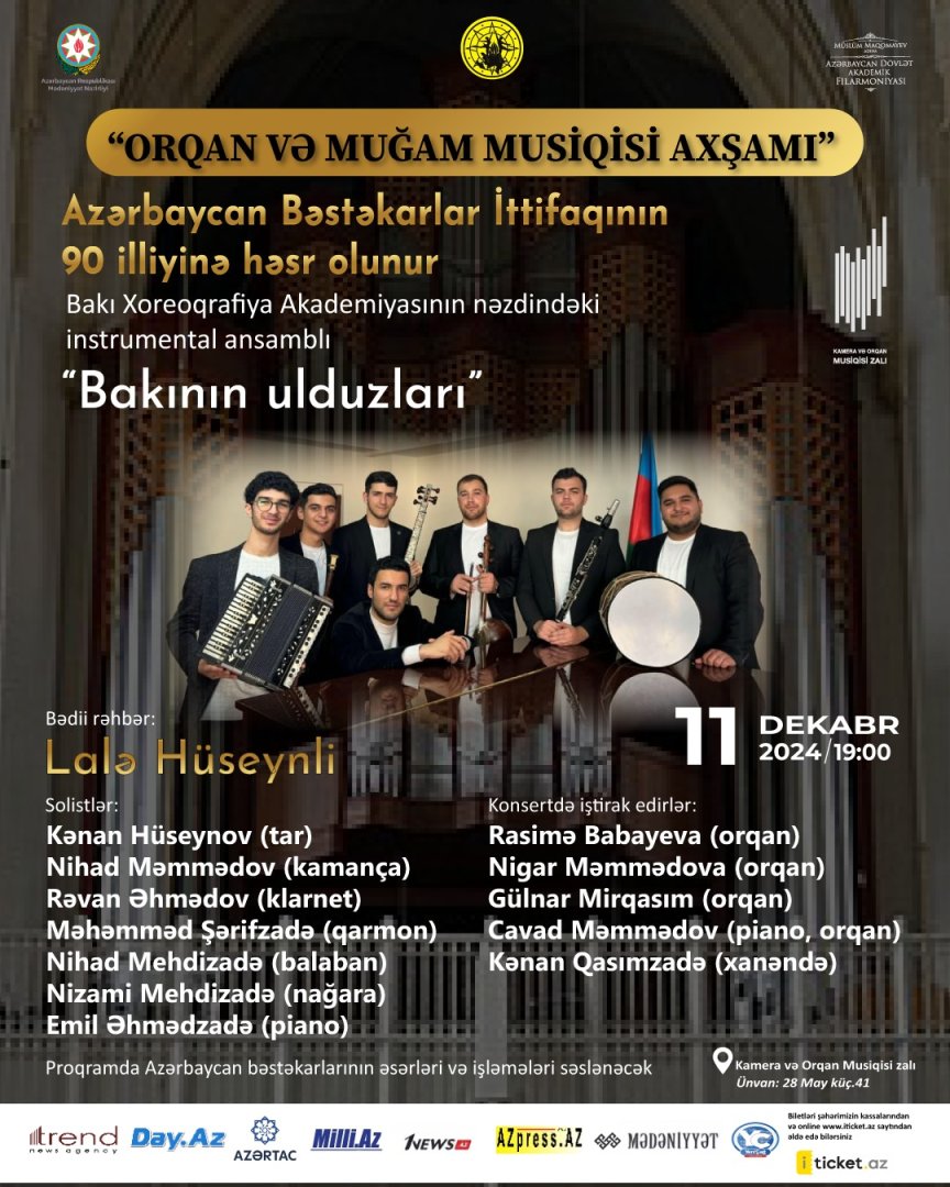 В концертной программе также приняли участие Расима Бабаева (орган), Гюльнар Миргасым (орган), Кянан Гасымзаде (ханенде), Нигяр Мамедова (орган) и Джавад Мамедов (фортепиано, орган).