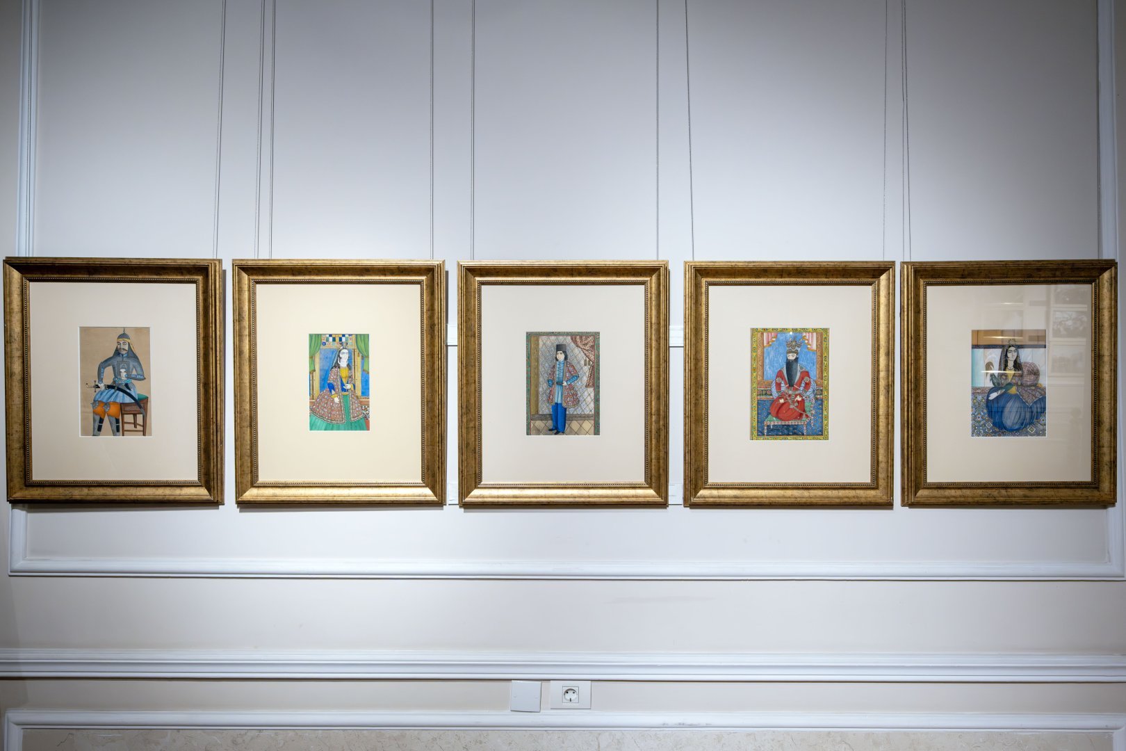 На марках изображены знаменитые произведения Мирзы Гадима Иревани - "Воин", "Портрет каджарской принцессы Мах Талят ханум", "Портрет знатной женщины", "Портрет каджарского принца Веджиуллы Мирзы" и "Фатали шах". Эти работы, относящиеся к разным периодам творчества художника, поражают сочетанием тонкого реализма, глубокого психологизма и удивительной декоративности.
